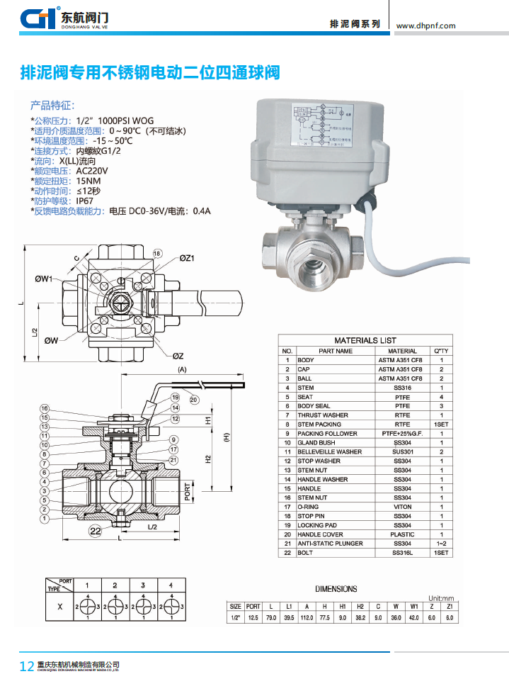 排泥閥用不銹鋼電動動換向閥 帶開關(guān)到位信號反饋